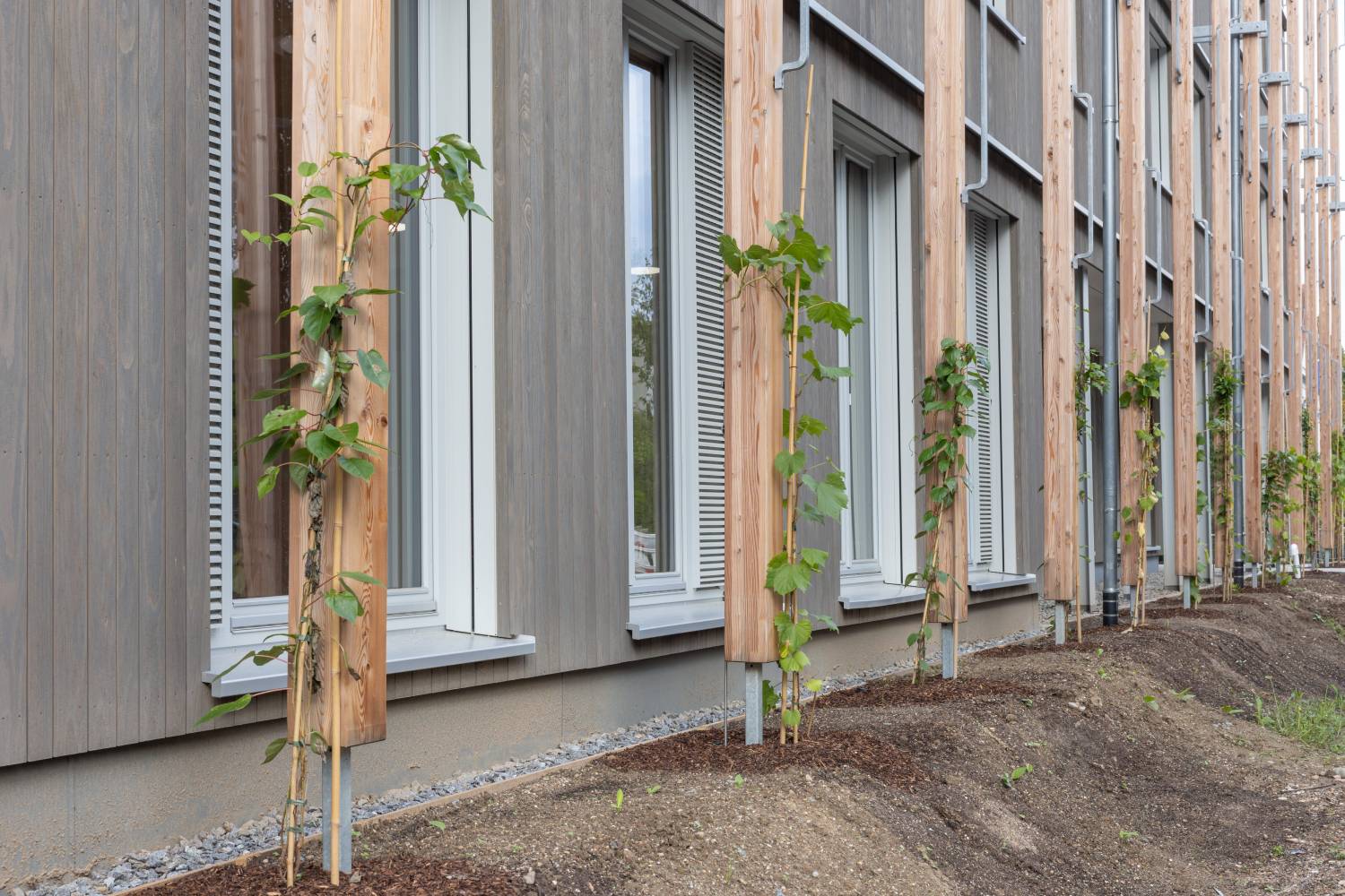 Insgesamt 5.000 Quadratmeter umfasst die Bruttogeschossfläche; der Komplex steht auf einem 1.400 Quadratmeter großen Grundstück. Vor dem Gebäude wurde ein separates Gerüst aufgestellt, auf dem die Fassadenbegrünung erfolgt.